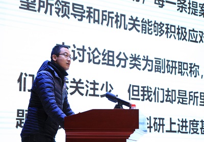 會上,吳忠?guī)洝⑧嵜鬟h、周雍進、陳曦、韓晶峰分別代表各小組匯報了討論情況,反映今年的大會報告內(nèi)容飽滿、激動人心,切實為研究所跨越式發(fā)展凝聚力量。與會代表圍繞戰(zhàn)略目標與發(fā)展規(guī)劃;完善體制和機制建設(shè);黨的建設(shè);管理工作和制度建設(shè);支撐保障體系建設(shè);民主管理、3H工程建設(shè)等職工普遍關(guān)心的其他問題共六個議題提出了意見和建議。