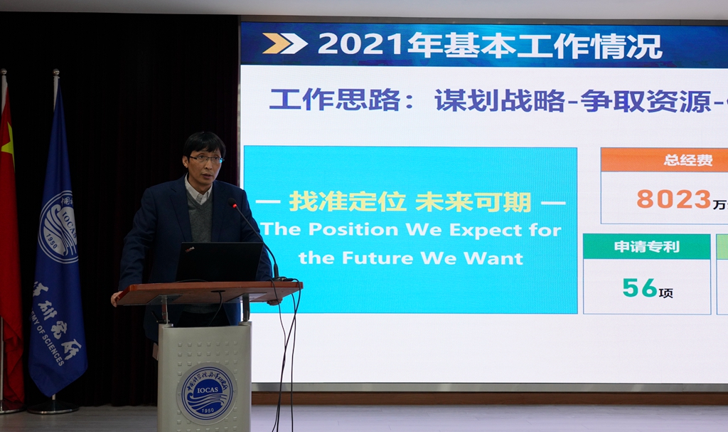 所長(zhǎng)王凡做題為“奮進(jìn)‘十四五’勇?lián)萍甲粤⒆詮?qiáng)使命,向未來踔厲奮發(fā)邁向海洋強(qiáng)國(guó)新征程”的海洋所年度工作報(bào)告,以及“奮進(jìn)‘十四五’,開啟新征程”的煙臺(tái)海岸帶所年度工作報(bào)告,全面總結(jié)了兩所2021年的工作,對(duì)照習(xí)近平總書記重要指示批示精神和黨中央、國(guó)務(wù)院重大決策部署,對(duì)標(biāo)“四個(gè)率先”和“兩加快一努力”目標(biāo)要求及院黨組部署要求,深入分析了研究所存在的差距和不足,并對(duì)2022年的重點(diǎn)工作進(jìn)行了部署。