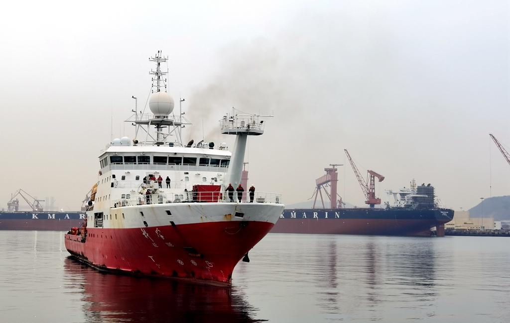 “科學(xué)”號(hào)緩緩駛?cè)肽父?/p>