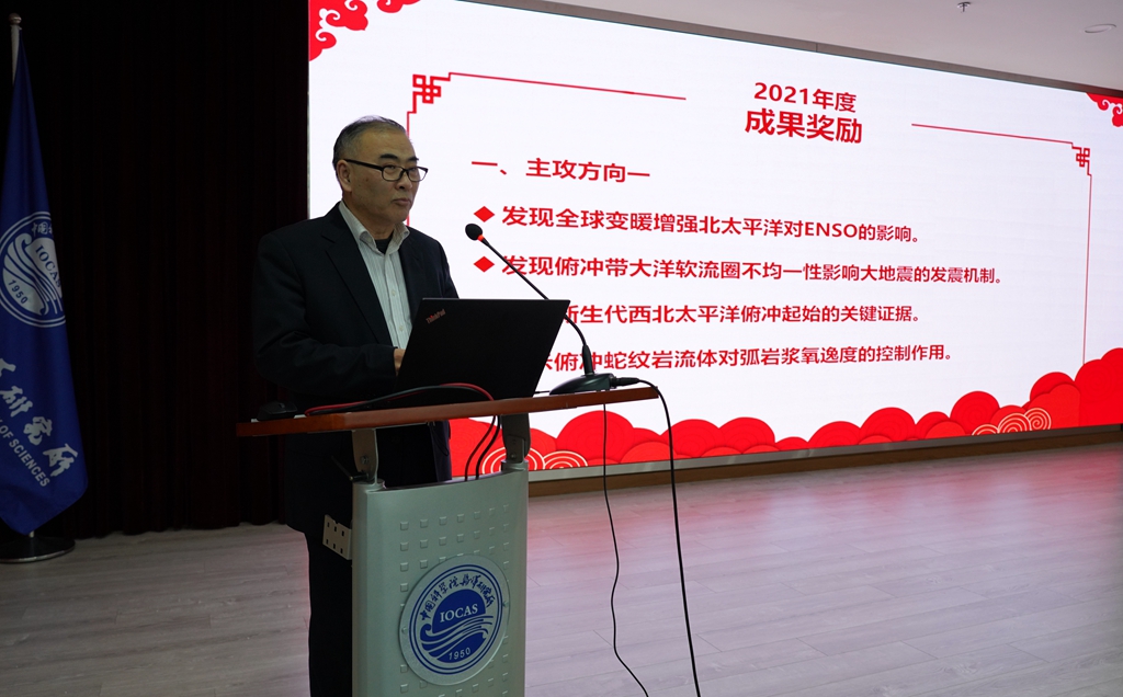 常務(wù)副所楊紅生長宣讀海洋所2021年度成果獎勵通知