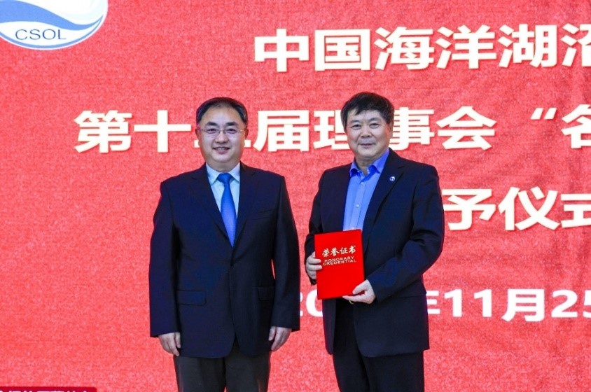 會(huì)上,新一屆理事長王凡宣讀了《中國海洋湖沼學(xué)會(huì)關(guān)于授予名譽(yù)理事長和榮譽(yù)會(huì)員的決定》,并為第十二屆名譽(yù)理事長孫松頒發(fā)榮譽(yù)證書。