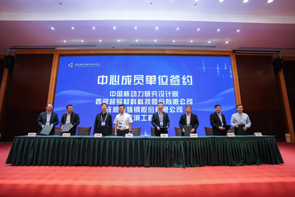 開幕式后,金屬所副所長劉崗介紹了研究所基本情況,舉行了中心新成員簽約儀式,中國核動力設計研究院、西部超導材料科技股份有限公司、撫順特殊鋼股份有限公司、哈爾濱工程大學、新疆湘潤新材料科技有限公司、中核四0四有限公司、南京理工大學等12家單位簽約加盟師昌緒先進材料創(chuàng)新中心。