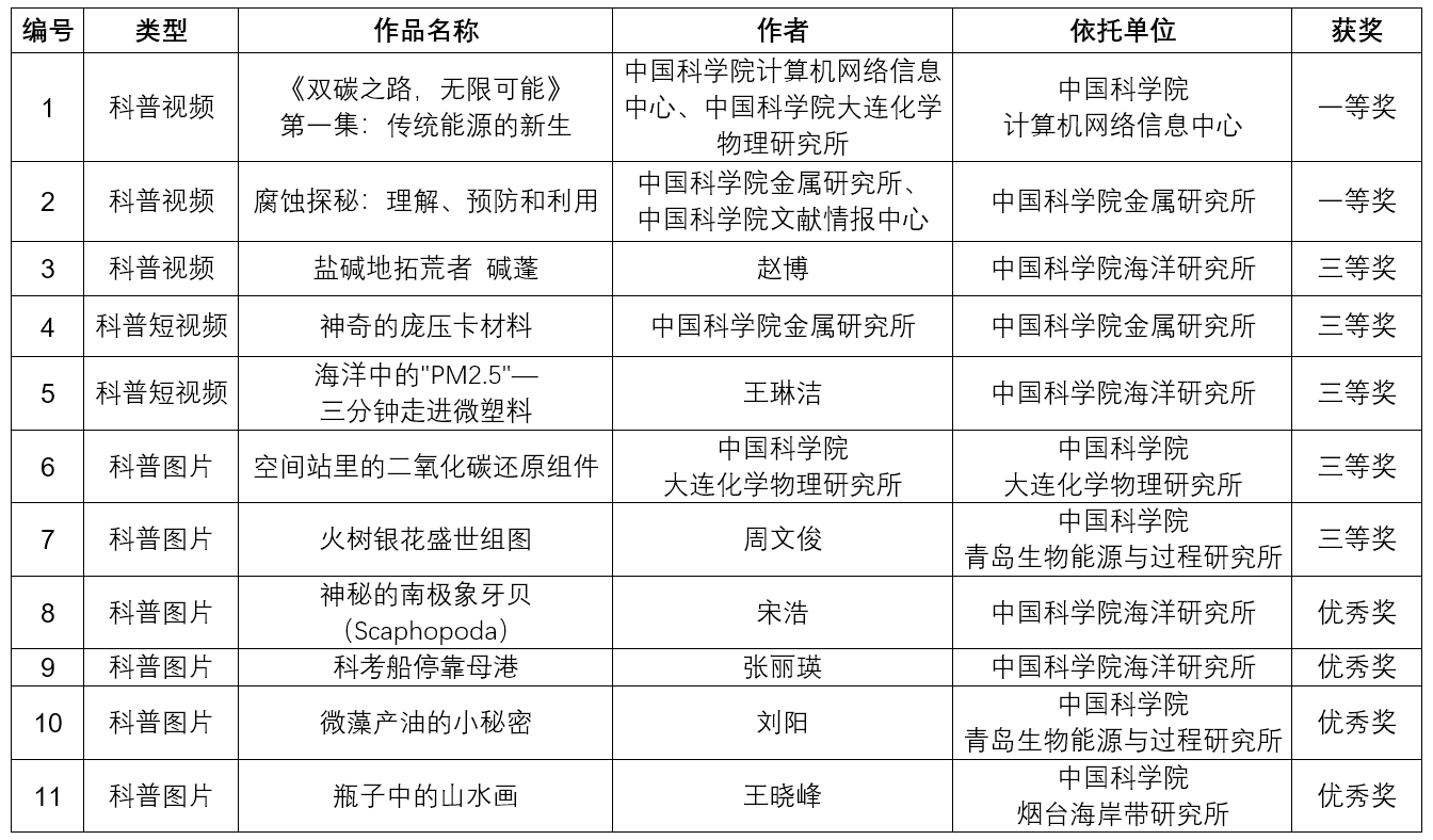 2023年中國科學院科普視頻圖片大賽沈陽分院系統(tǒng)獲獎名單(公開組)
