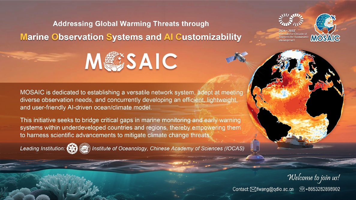 為破解這一全球性難題,中國科學(xué)院海洋研究所所長王凡研究員聯(lián)合馬達(dá)加斯加、埃及、葡萄牙、秘魯、巴拿馬等國家科研機(jī)構(gòu)的科學(xué)家,共同發(fā)起了“AI賦能智慧觀測應(yīng)對(duì)氣候變暖威脅”(英文:Addressing Global Warming Threats through Marine Observation Systems and AI Customizability,簡稱MOSAIC)國際科學(xué)計(jì)劃。該計(jì)劃旨在利用海洋所在海洋觀測及AI海洋模型研發(fā)領(lǐng)域的國際領(lǐng)先成果,通過技術(shù)創(chuàng)新,提升全球海洋觀測的效率和可及性。