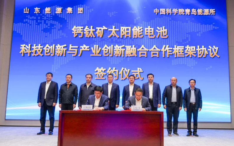 在會上,副所長、副院長徐峰,山東能源集團副總經(jīng)理劉強分別代表雙方簽署鈣鈦礦太陽能電池科技創(chuàng)新與產(chǎn)業(yè)創(chuàng)新融合合作框架協(xié)議,李偉、呂雪峰共同為“太陽能光電轉(zhuǎn)化與利用全國重點實驗室-技術(shù)驗證與產(chǎn)業(yè)化示范基地”揭牌。